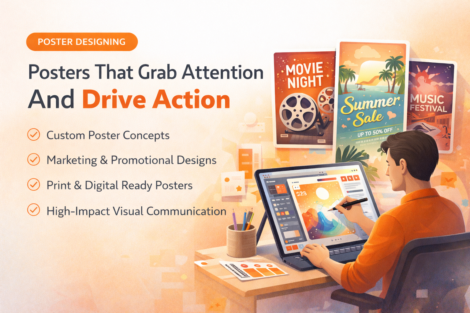 Posters are powerful visual tools to communicate your message instantly. We design posters that are bold, creative, and aligned with your brand identity.